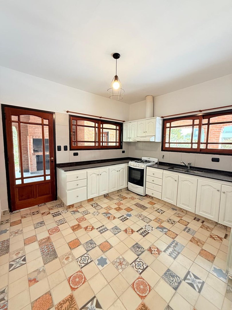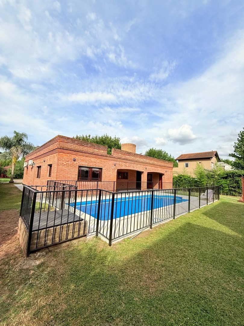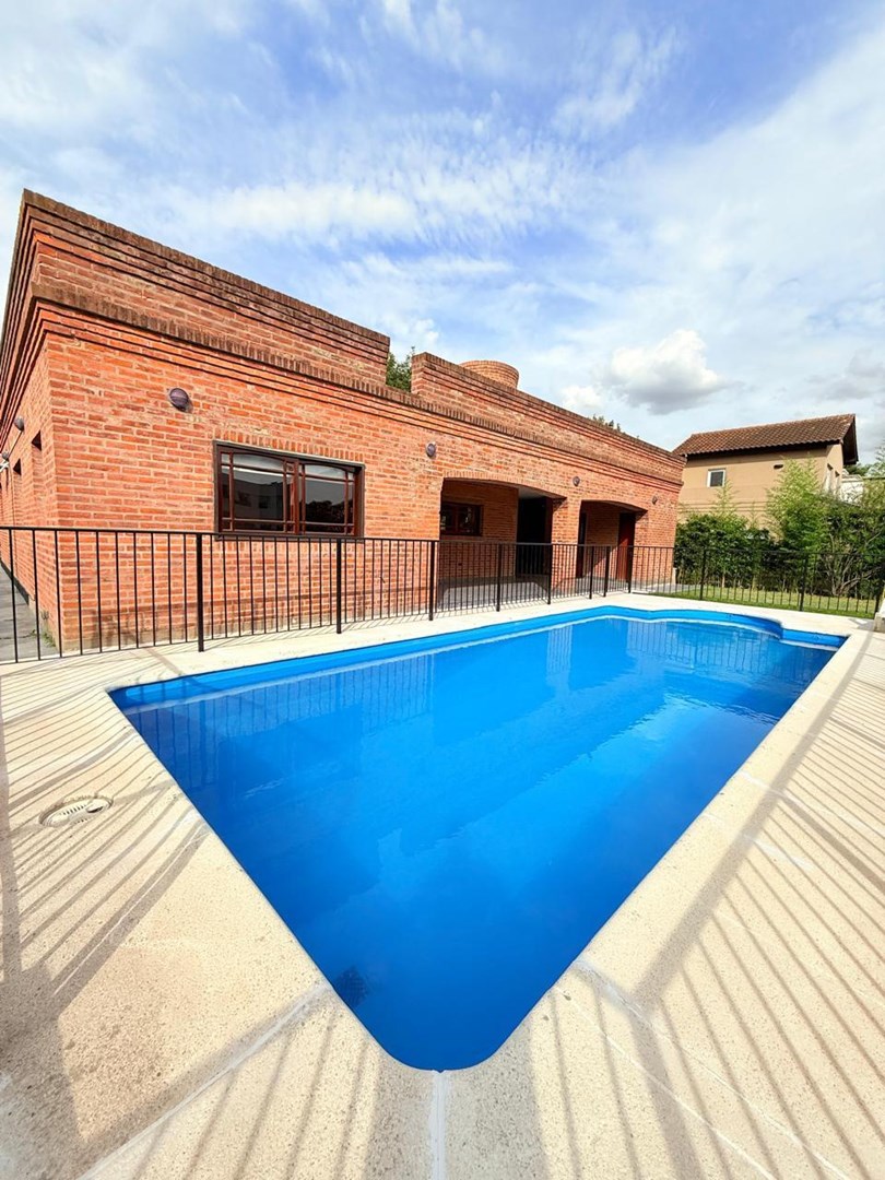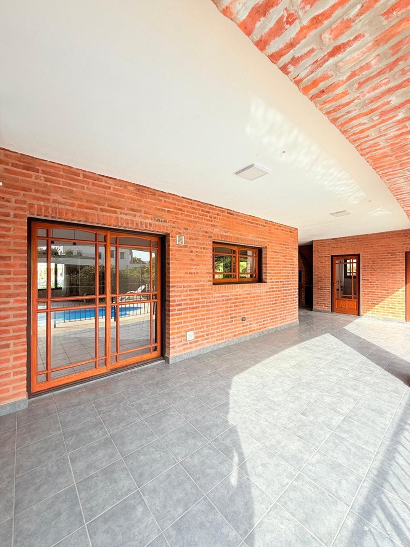 Presentamos esta excelente propiedad de construcción tradicional en ladrillo a la vista, ubicada en el Barrio Cerrado San Patricio, este barrio se destaca por su entorno tranquilo y familiar, con seguridad y acceso controlado, calles arboladas y un ambiente ideal para quienes buscan calidad de vida. Además, ofrece espacios comunes, áreas verdes y un entorno en constante crecimiento, con cercanía a accesos principales, colegios y centros comerciales. La propiedad se distingue por su sólida estructura, la amplitud de sus ambientes y un espacio exterior pensado para el confort y el disfrute. Al ingresar, encontramos un amplio y luminoso living, con gran altura que aporta calidez y una agradable sensación de amplitud. La cocina es independiente, equipada con mobiliario bajo mesada, y se conecta con un cómodo comedor que permite una excelente circulación. Cuenta con tres dormitorios confortables, todos con amplios ventanales que garantizan excelente iluminación natural, y tres baños completos. En el exterior se encuentra uno de los principales atractivos: una amplia galería techada con parrilla integrada, ideal para reuniones sociales. El parque, de generosas dimensiones y completamente parquizado, brinda un entorno verde y armonioso, e incluye una pileta de importantes medidas con cerco perimetral de seguridad.